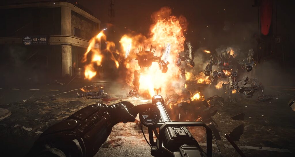“You’ll be bucking all those pesky, modern conventions with the B/FLAM-80 Cremator in hand. This heavy support flamethrower sprays a continuous column of flame, thanks to its massive backpack fuel tank.”